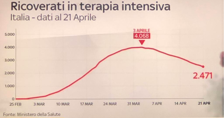 Con relación al Covid-19, la fecha actual esta es la situación en Italia. La situación está en lenta pero en constante mejoría. A continuación las tablas mostraràn esta situación.