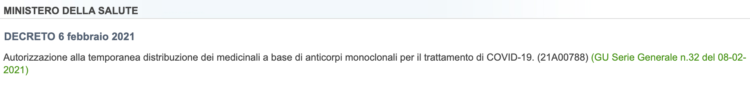 Hace unos días, en Italia, el AIFA -Agenzia italiana del farmaco- autorizó su comercialización sin esperar la autorización del EMA -European Medicines Agency-. Su costo es de dos mil euros. Desde el punto de vista logístico, tiene su particularidad: «dentro de los primeros 10 días de la enfermedad, en la casa del paciente bajo control medico porque pueden tener alguna reacción. La solución propuesta es que sean unidades móviles que van a la casa del paciente con la maquinaria necesaria en el caso se requiera una ecografía del tórax, oxigeno. El equipo estará conformado por dos enfermeras y un médico. Estamos en la fase inicial de su aplicación».