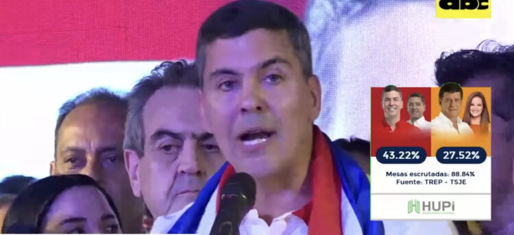 Las palabras de Santiago Peña, fueron «Gracias a cada uno de ustedes, ¡Gracias Paraguay!» Es el ganador virtual, le lleva veinte puntos a su rival, Efraín Alegre.  Es una esperanza para Latinoamérica, las cosas se verán mejor en las próximas elecciones en Argentina, entenderemos hacía adónde irá el MERCOSUR. por lo pronto quedaron atrás las relaciones con China propuestas por Efraín Alegre.
