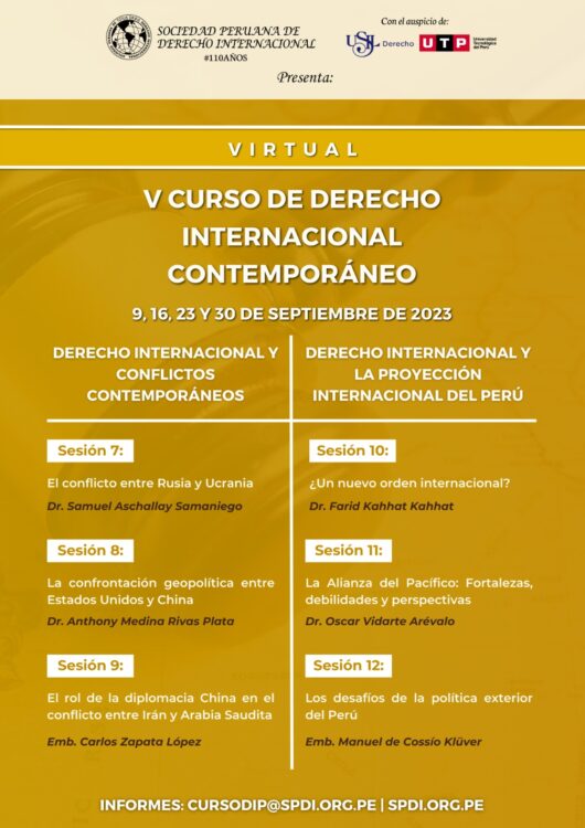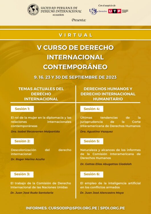 Les recordamos que las inscripciones están abiertas para el «V Curso de Derecho Internacional Contemporáneo» que contará con prestigiosos expositores del Perú y el extranjero.