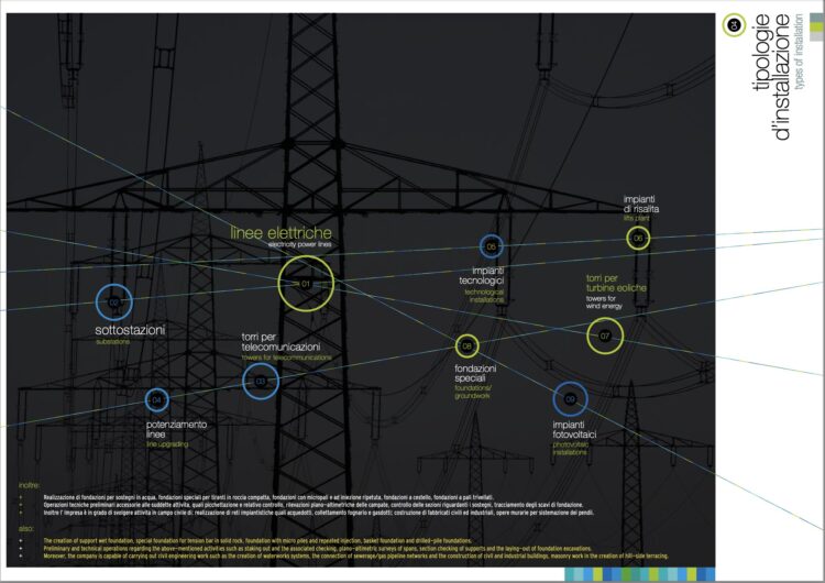 Nel 1960 la Società inizia ad operare nel settore delle Linee Elettriche Aeree, con il principale operatore del mercato elettrico italiano, contribuendo allo sviluppo della Rete Elettrica Nazionale con una tensione di 380 kV.