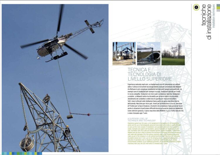 Nel 1978 REBAIOLI è stata la prima azienda in Italia ad introdurne l’utilizzo di elicotteri per attività di montaggio e tesatura.