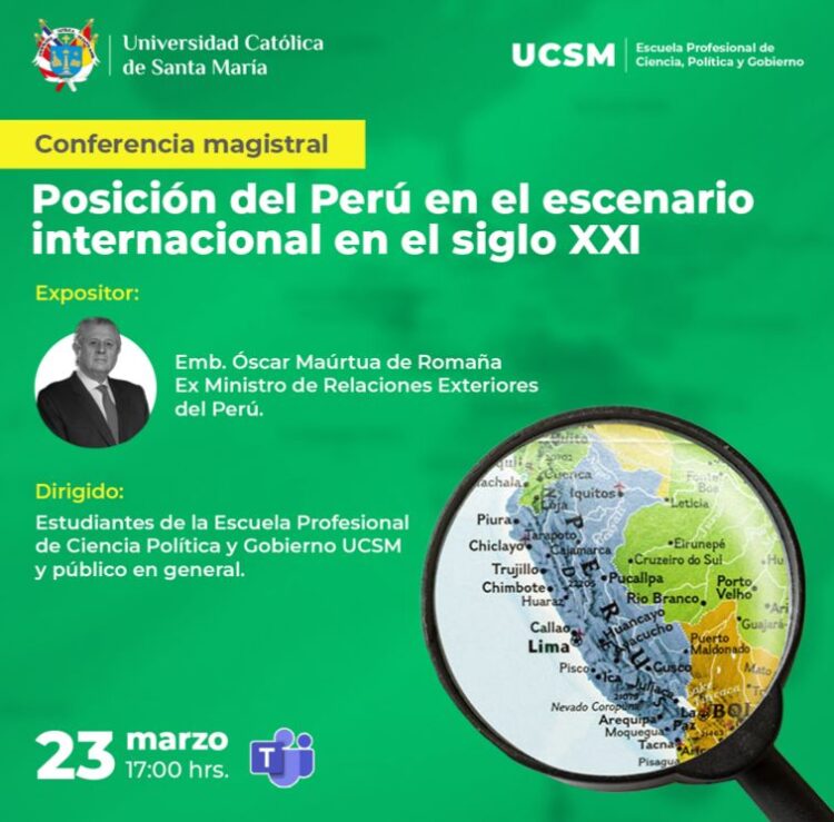 Se le ha invitado a Conferencia Magistral del Excmo. Emb. Óscar Maurtua de Romaña – Escuela Profesional de Ciencia Política y Gobierno