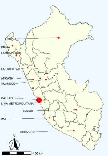 Lima acumula a la fecha 278 infectados. Las siguientes regiones también presentan pacientes con COVID-19: Piura (19), Loreto (16), Junín (10), Lambayeque (8), Arequipa (7), Callao (6), La Libertad (5), Áncash (4), Cusco (4), Huánuco (4), Ica (1) y Madre de Dios (1). Hasta la fecha, el COVID-19 ha provocado en el Perú 5 personas fallecidas.