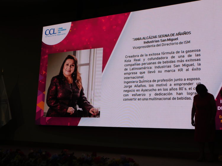 Tania Alcazar de Añaños es premiada en la Cámara de Comercio de Lima