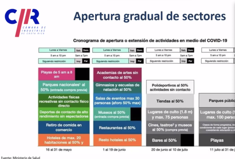 La mejor reacción País es Costa Rica, sin dejar de hacer notar la capacidad de colaboración y asunción de responsabilidad de su pueblo, producto seguramente del nivel de educación del mismo, el presidente de la Cámara de Industrias de Costa Rica, Enrique Egloff, explica con lujo de detalles las reuniones con el Presidente de Costa Rica y con los Ministros, la elaboración conjunta de protocolos, que permitieron a la economía de no parar sino, más bien, trabajar cumpliendo las prácticas de higiene y de distanciamiento físico más que como equivocadamente se señala, “distanciamiento social”. Desde cuando se declaró la emergencia, con el primer contagio, el 6 de marzo a la fecha han tenido 961 casos y una mortalidad del 0,6%, una de las más bajas de la región. Hay un rebrote pero se verifica en la parte colindante con Nicaragua, debido a la migración nicaraguense en busca de trabajo y también en busca de cuidado sanitario, porque en Costa Rica, la salud es gratuita para todos, sean o menos residentes.