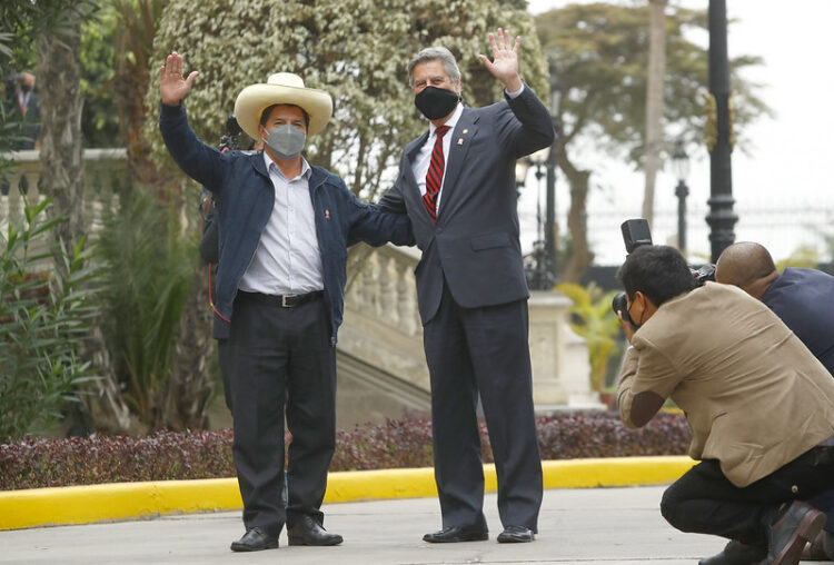 Estuvo muy feliz el 22 de julio el presidente interino Francisco Sagasti recibiendo al apenas proclamado presidente Pedro Castillo en su visita a Palacio de Gobierno, su futura residencia. No vimos puños en alto, eran manos distendidas. Una de las últimas actividades de Sagasti en su corto período de presidencia interina.