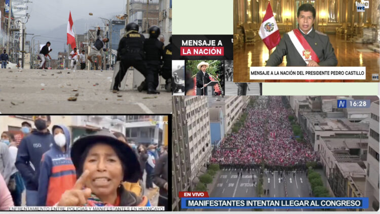 Era el 4 de abril, faltaban minutos para media noche, cuando se anuncia Mensaje a la Nación de Pedro Castillo, inicialmente sin audio, el hombre hablaba con micrófono apagado. Se cortó la transmisión. Minutos después volvió a aparecer, expuso: “frente al incremento del precio del petróleo y de productos de primera necesidad a nivel internacional, mi gobierno ha adoptado un conjunto de medidas para mejorar los ingresos de los peruanos y evitar que las familias se vean afectadas por el aumento de los precios de los productos de primera necesidad. Estas medidas, aprobadas en el marco del diálogo realizado en la ciudad de Huancayo, no solo benefician a la población de la región de Junín, sino a todos los peruanos y peruanas…..Hago un llamado a la calma, a la serenidad. La protesta social es un derecho constitucional, pero debe hacerse dentro del marco de la ley, respetando la integridad de las personas, así como la propiedad pública y privada. Ante los hechos de violencia que algunos grupos han querido crear, mediante el bloqueo del libre tránsito en los accesos a las provincias de Lima y Callao, creando inseguridad y zozobra en los trabajadores, madres y población en general, y en aras de restablecer la paz y el orden interno, el Consejo de Ministros de conformidad con el inciso 1 del artículo 137 de la Constitución Política, decreto el estado de emergencia, suspendiendo los derechos constitucionales relativos a la libertad y a la seguridad personales, la inviolabilidad del domicilio y la libertad de reunión y de tránsito en la provincia de Lima y Callao. El Consejo de Ministros ha aprobado declarar la inamovilidad ciudadana desde las dos de la mañana hasta las 11:59 de la noche del día martes 5 de abril, para resguardar los derechos fundamentales de todas las personas……”.