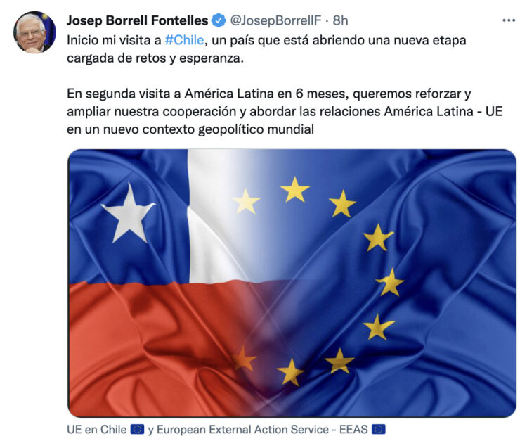 En Chile, ambos, tanto el presidente de Chile, Gabriel Boric como el AR/VP Josep Borrell, estuvieron de acuerdo en la importancia de este acuerdo de última generación, promoviendo nuevos estándares en el ámbito del desarrollo sostenible, igualdad de género y comercio justo.