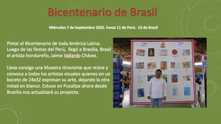 Pintar el Bicentenario de toda América Latina. Luego de las fiestas del Perú, llegó a Brasilia, Brasil el artista hondureño, Jaime Vallardo Chávez.
