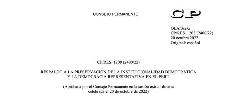 CONSIDERANDO la solicitud formulada al señor Secretario General por el señor Presidente de la República del Perú de fecha 12 de octubre de 2022 para la aplicación de la Carta Democrática Interamericana con la finalidad de preservar la institucionalidad democrática y el legítimo ejercicio del poder en el Perú;
