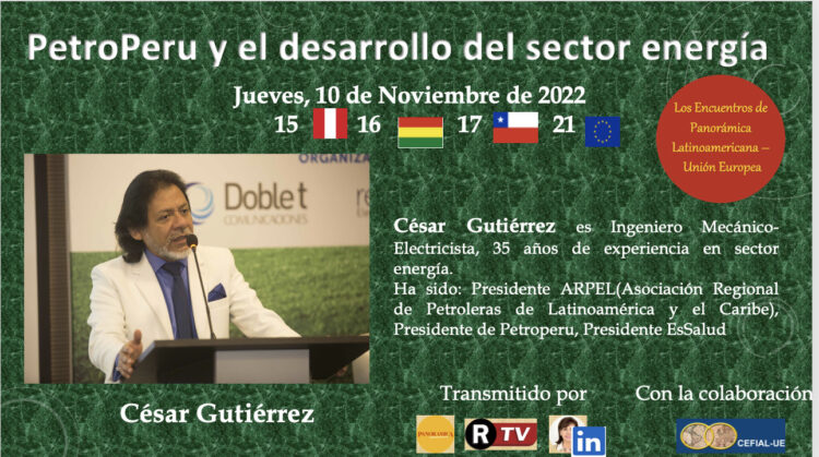Jueves 10/XI. horas 15 de Perú, 21 de la UE. Conversamos con César Gutiérrez, PetroPerú y el desarrollo del sector energía