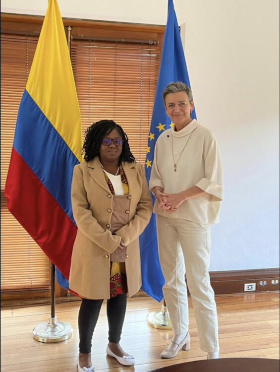 Colombia recibió la visita oficial de la Vicepresidenta Ejecutiva – Europa apta para la Era Digital y Comisionada de Competencia, Margrethe Vestager. Uno de los eventos claves de la visita fue el lanzamiento oficial de la “Alianza Digital entre la Unión Europea y América Latina y el Caribe”, la primera coalición digital a nivel regional, que se llevó a cabo en el Palacio Presidencial, Casa de Nariño.