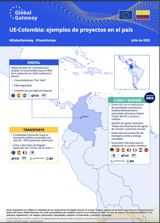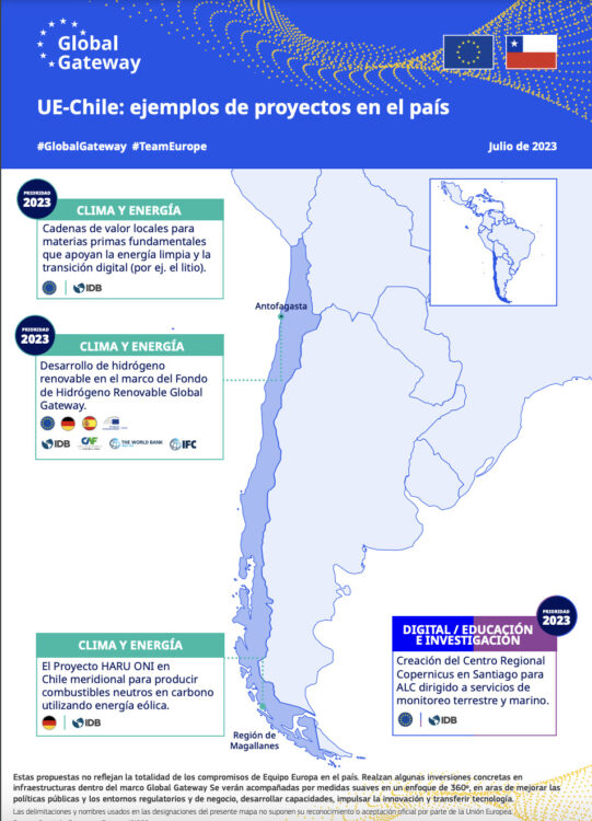En la Agenda de Inversión de la estrategia Global Gateway, pasarela entre la Unión Europea y América Latina y el Caribe, destacan proyectos y prioridades de inversión potenciales con los que se contribuirá a satisfacer las necesidades de inversión de las regiones. El fomento de unas cadenas de valor conjuntas propiciará una innovación basada en la tecnología compartida, creará valor añadido local y generará crecimiento, empleo y cohesión social. Esta Agenda, que fuera presentada en la Mesa Redonda Empresarial UE-ALC el 17 de julio con carácter previo a la celebración de la Cumbre UE-CELAC, se centra en promover una transición ecológica, digital y justa para reforzar el singular potencial de América Latina y el Caribe en materia de biodiversidad, recursos naturales, energías renovables, hidrógeno verde, producción agrícola y materias primas críticas y estratégicas, con la brecha digital y la cohesión social como principales retos.