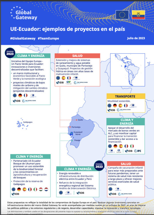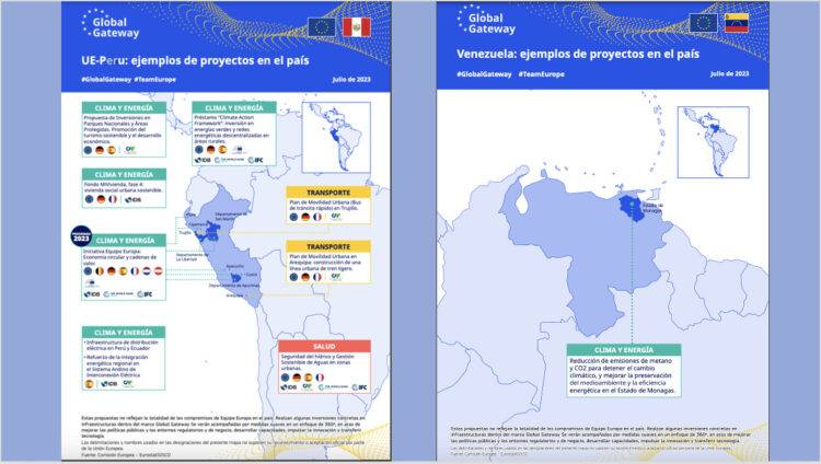 El Equipo Europa ha comprometido más de €45,000 millones para apoyar el refuerzo de la asociación con América Latina y el Caribe hasta 2027. Se espera que a este objetivo contribuyan otros países, así como el sector privado y las instituciones financieras. Una transición ecológica justa Una transformación digital inclusiva Desarrollo humano Resiliencia sanitaria y vacunas Cuatro pilares La Agenda está representada por una lista de más de 130 proyectos en diversos países de América Latina y el Caribe con los que se espera impulsar inversiones de calidad.