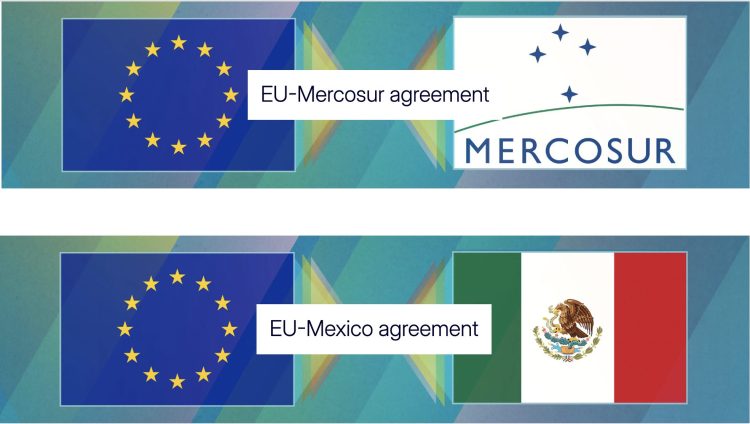 - el Acuerdo de Asociación UE-Mercosur (AEMP) y el Acuerdo Global Modernizado UE-México, sujetos a ratificación por separado por todos los Estados miembros; y