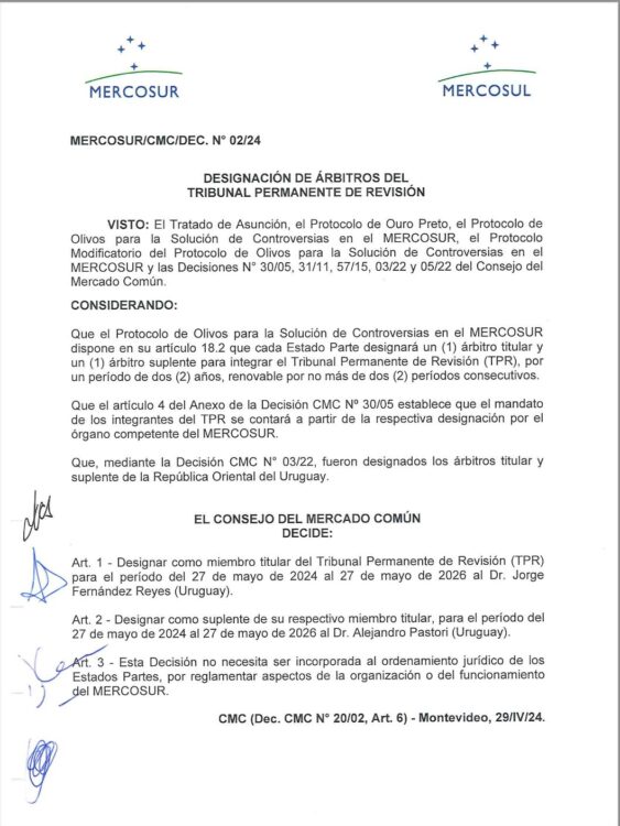 MERCOSUR. Designado miembro del Tribunal Permanente de Revisión