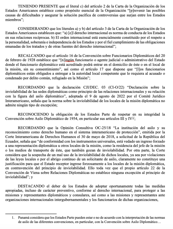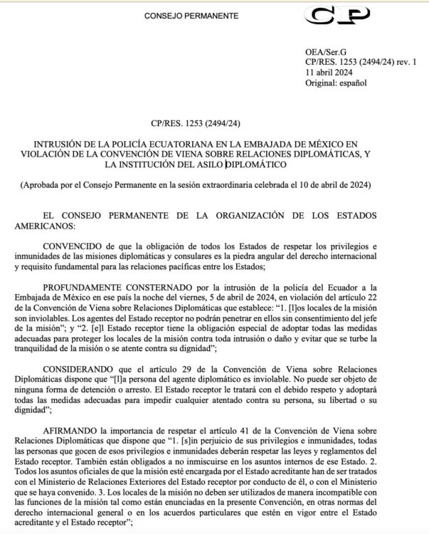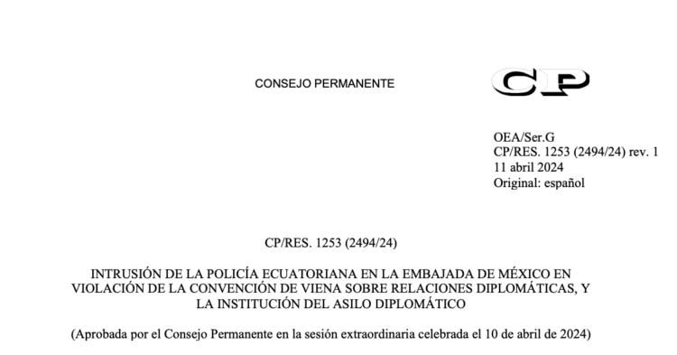 OEA. Consejo Permanente. Caso Ecuador – México