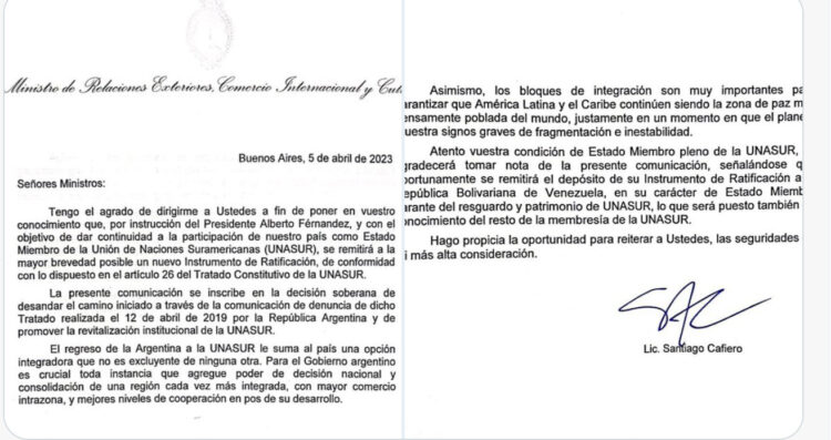 De esta manera hemos decidido desandar el camino iniciado por el macrismo de forma arbitraria el 12 de abril de 2019. La continuidad de la Argentina en la UNASUR le suma al país una instancia integradora que no es excluyente de ninguna.