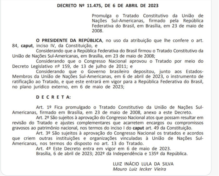 Por, otro lado, Lula en su cuenta de Twitter escribió «Brasil volta a integrar a União de Nações Sul-Americanas (Unasul), fundada em 2008 durante o auge dos governos de esquerda na região. A saída do país do bloco se deu em 2019, durante o governo Bolsonaro, para integrar o Prosul ao lado de