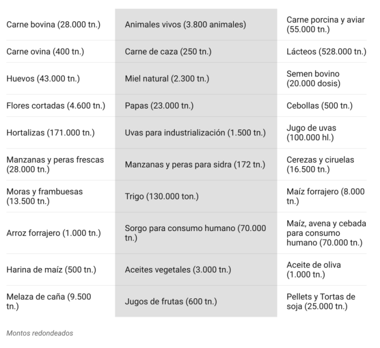 En adición, Suiza, Noruega y Liechtenstein otorgan al MERCOSUR 31 contingentes arancelarios por más de 1.400.000 toneladas de productos agrícolas con preferencias totales o parciales, ya sea a través de cuotas bilaterales exclusivas para el MERCOSUR o dentro de cuotas OMC1 de los siguientes productos: