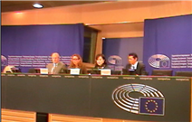 La Diputada europea Rosanna Conte, italiana, miembro de la Delegación para la Comunidad Andina hospedó el evento, sensible al trabajo de los agricultores, a la conversión del cultivo de hoja de coca por el cacao, con la idea que estos cultivos se amplíen en muchas más hectáreas en conversión y también se diversifiquen con otros productos. Organizador del evento, el CEFIAL-UE, con su directora, quien suscribe la presente.