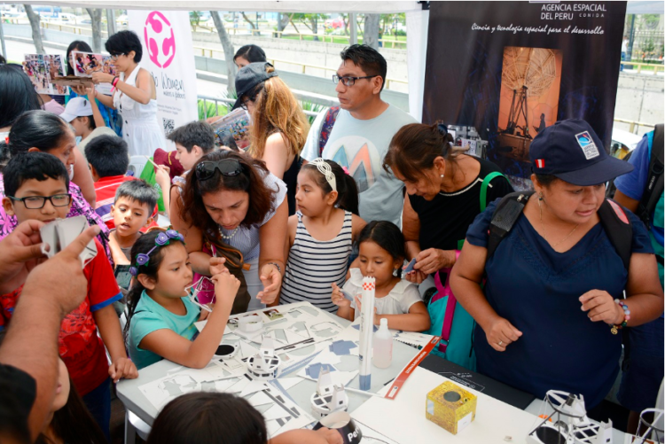 El Parque Juana Alarco de Dammert, en el centro de Lima, albergó una docena de stands donde instituciones como el Instituto Geofísico del Perú, la Agencia Espacial del Perú, la Universidad Peruana Cayetano Heredia, el Centro de Innovación de la Municipalidad de Los Olivos, ACS Perú Chapter, Fab Lab Perú, Myps, Codehunters, Digitoys y Ceprecyt demostraron a las asistentes una serie de experimentos y dinámicas en ciencia y tecnología, con el ánimo de impulsar las vocaciones científicas en este sector de la población.
