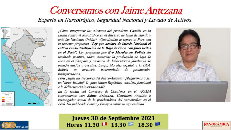 ¿Cómo interpretar los silencios del presidente Castillo en la Lucha contra el Narcotráfico en el discurso de toma de mando y ante las Naciones Unidas? ¿Qué destino le espera al Perú con la reciente propuesta “Ley que declara de interés Nacional el cultivo e industrialización de la Hoja de Coca, con fines lícitos en el Perú”. Ley propuesta por Evo Morales en Bolivia sin resultado positivo, salvo, aumentar la producción de hoja de coca en el Chapare y creación de laboratorios familiares de transformación a cocaína. Luego, Morales expulsó a la DEA. Bolivia es territorio incontrolado de producción-transformación.