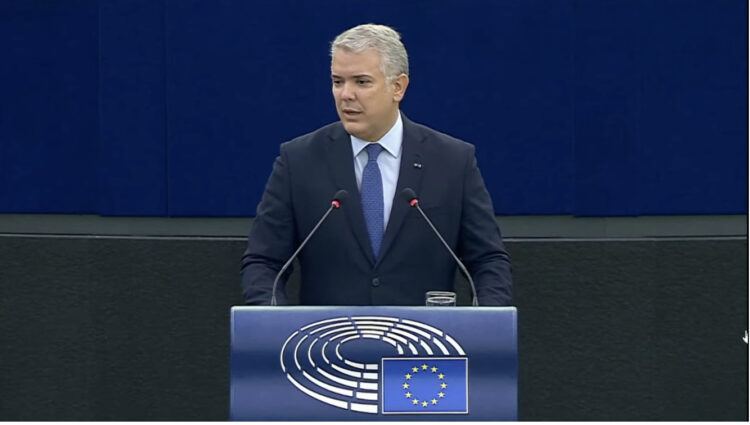 El presidente colombiano, Iván Duque, agradeció ante el pleno del Parlamento el apoyo de la UE al proceso de paz en el país y para la acogida de los desplazados venezolanos.