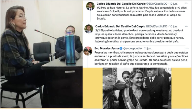 El Tribunal especial dictó la sentencia contra la expresidenta interina Jeanine Añez, con la pena máxima de 10 años, sostiene el Tribunal que Añéz debió pedir la conformación de otra Directiva y no asumir la presidencia, el delito está en haber asumido la presidencia ante el vacío de poder.