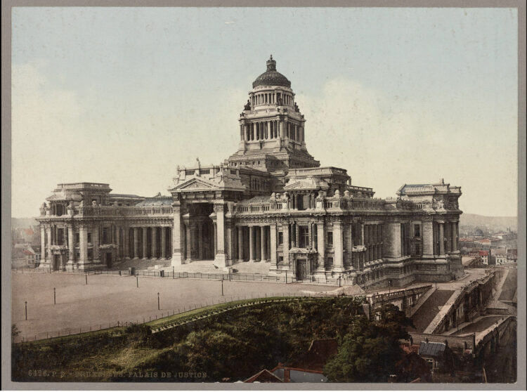 La Corte de Justicia de Bruselas fue construida por el arquitecto belga Joseph Poelaert, quien también construyó la iglesia Sainte Cathérine en 1854, el Teatro Royal de la Monnaie en 1856, la iglesia de Nuestra Señora de Laeken en 1872 y su obra más importante, el Palacio de Justicia de Bruselas en 1879 aunque su inició se remonta a 1844. Las construcciones, las grandes construcciones, son una florida actividad belga, se derriba, se construye, se refacciona, es lo más habitual en la capital europea, hasta la fecha, es así. Las grandes obras, son aquellas que requieren tantos capitales.