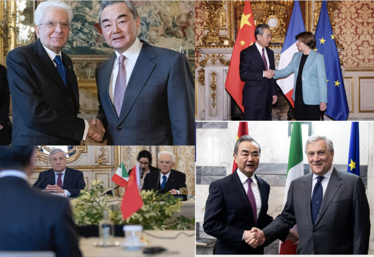 Luego Wang Yi se dirigió a Italia, visitó al  presidente Sergio Mattarella, una Agenda con dos puntos: Un esfuerzo decidido por la paz en Ucrania y el fortalecimiento de las relaciones entre Italia y China. Estuvo presente Antonio Tajani. Wang Yi invitó al presidente Mattarella a China en nombre del presidente Xi Jinping.
