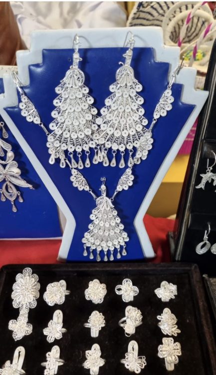 Tantos puestos, uno al lado del otro, se encuentra la Amazonía, el norte del Perú con Piura y su trabajo en platería, en filigrana, los renombrados aretes para bailar La Marinera, las «dormilonas», los ponchos, los sombreros de todo material, los chullos, los guantes, los cinturones, las carteras repujadas. El Perú representado. Hace bien al espíritu un baño de nuestras raíces peruanas en estas fiestas que se acercan, que nos requiere encontrar una sola identidad.