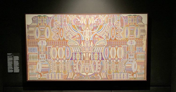 El cuadro de Aloïse Corbaz (1886-1964) del título “Carrousel fait toruner la tête», nos hace conocer Aloïse, una artista suiza quién, desde el hospital siquiátrico, luego de haber sido diagnosticada esquizofrénica, pasó gran parte de su vida. Es precisamente en el hospital donde descubre su talento, realizando sus obras en cuanto material encontraba.