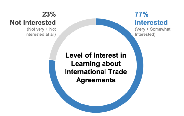 - La conciencia y la relevancia son claves para despertar el interés por seguir comprendiendo los asuntos del comercio internacional. Además del comercio de bienes y servicios, el público espera que el comercio internacional fomente las mejores prácticas e innovación.