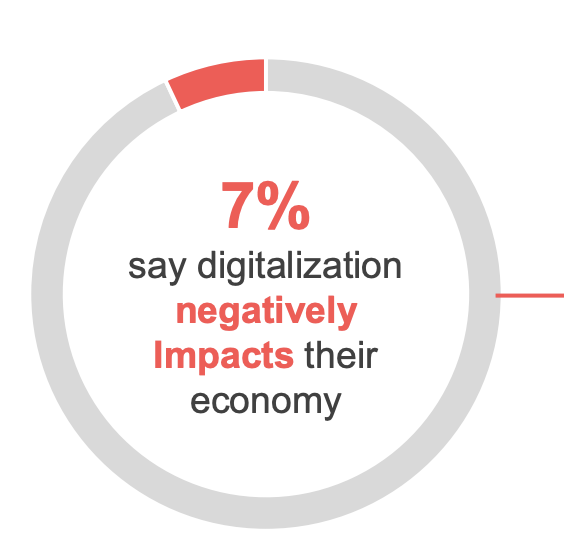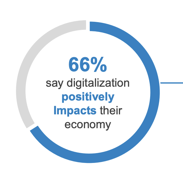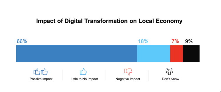 - Se considera que la transformación digital traerá impactos positivos a la economía a nivel local. Quienes lo ven positivamente creen que es un motor de crecimiento; mientras que quienes piensan lo contrario tienen preocupaciones en torno a la seguridad cibernética, la desinformación y la pérdida de empleo.