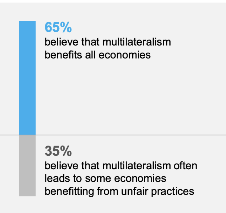 - Los resultados resaltan la necesidad de aumentar la comunicación sobre cómo el multilateralismo beneficia a otros aspectos de la sociedad más allá del comercio, así como el multilateralismo puede influir positivamente en la situación económica local y contribuir al progreso social.
