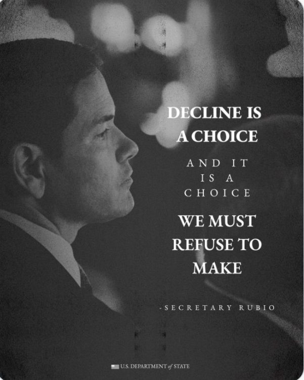 Actuando juntos de esta manera, no solo ayudaremos a recuperar una política exterior sensata. Nos devolverá una visión más clara de nosotros mismos. Nos restaurará un lugar en el mundo y, al hacerlo, reprenderá y disuadirá las fuerzas de la destrucción de la civilización que hoy amenazan tanto a Estados Unidos como a Europa. Así pues, en una época de titulares que anuncian el fin de la era transatlántica, que quede claro para todos que este no es nuestro objetivo ni nuestro deseo. Porque para nosotros, los estadounidenses, nuestro hogar puede estar en el hemisferio occidental, pero siempre seremos hijos de Europa.