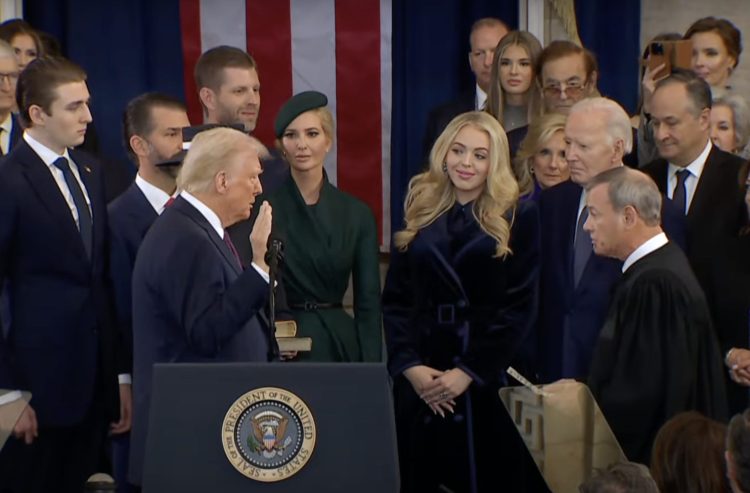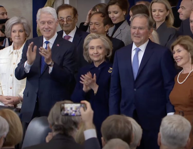 Gracias. Muchas gracias a todos. Muchas, muchas gracias. Al vicepresidente Vance, al portavoz Johnson, al senador Thune, al presidente del Tribunal Supremo Roberts, a los jueces del Tribunal Supremo de los Estados Unidos, al presidente Clinton, al presidente Bush, al presidente Obama, al presidente Biden, al vicepresidente Harris y a mis conciudadanos.