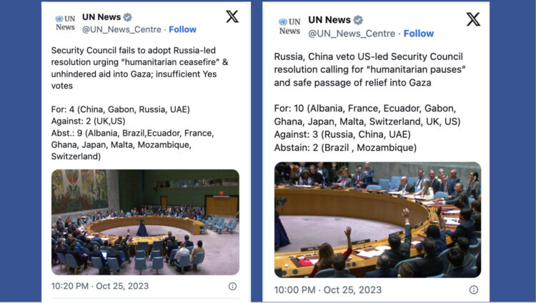 Las resoluciones redactadas de manera similar habrían pedido un “alto el fuego humanitario” o una “pausa humanitaria” para permitir la entrega segura de ayuda a civiles desesperados.