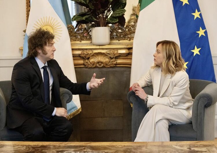 Javier Milei invitó a Giorgia Meloni a Argentina, podría ser en septiembre este viaje. En un clima sin revanchas como la ejercida por Cristina Fernández con la empresa  petróleo y gas, YPF SA. una medida que desató una batalla contra Repsol, el accionista español que controlaba la empresa y el gobierno de España; sin alianzas con BRICS en el horizonte, sin un gigante por Estado que todo lo quiere para perpetuarse en el poder a costa de la pobreza de muchos y gracias a los tributos de los pocos contribuyentes. Otra Argentina se vislumbra, es muy rica de recursos naturales para que los italianos no participen en el desarrollo de ambos países.