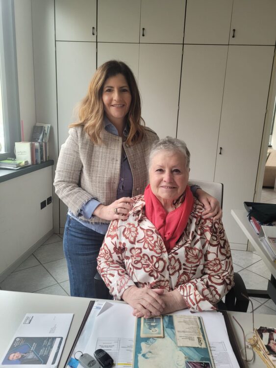 Sentada: la past-presidenta Giannina Rebaioli, en pie su hija Elisabetta Gatti, presidenta de la Rebaioli S.p.A.