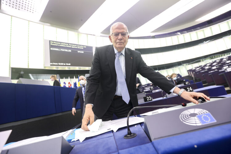 El gran éxito de la Unión Europea es, precisamente, el haber renunciado a la guerra como forma de resolver los conflictos. Y por eso tenemos que estar con Ucrania, tratando de prevenir una guerra en nuestras fronteras. Eso forma una parte fundamental de lo que llamamos política común de seguridad y defensa, que tengo el honor de intentar desarrollar. Y la presencia aquí, hoy, en este pleno, de las instituciones de la Unión: Consejo Europeo, con su presidente; la Comisión Europea, con su presidenta; y el Consejo [de la Unión Europea], al que tengo el honor de representar y presidir sus formaciones de asuntos exteriores y de defensa, marca la unidad europea frente a la posible agresión de Rusia contra Ucrania.