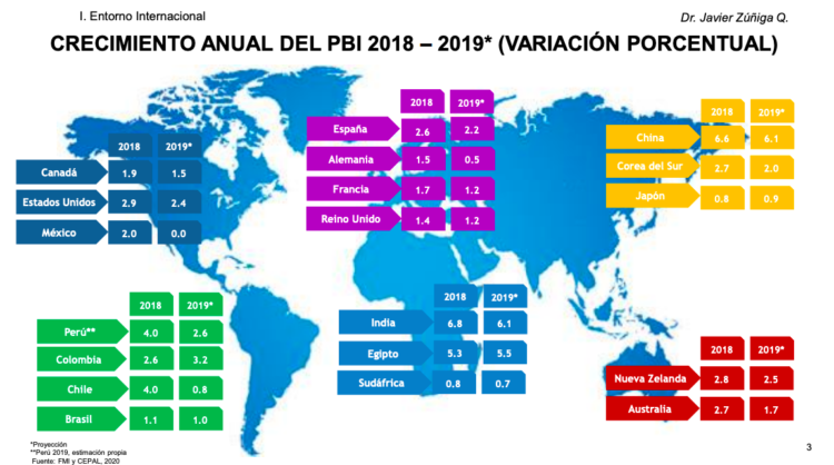 • China e India, serán los dos países con el mayor crecimiento económico a nivel mundial, con 6.1%, cada uno. Colombia (3.20%) y Perú (2.60%) serían los países sudamericanos con mayor crecimiento.