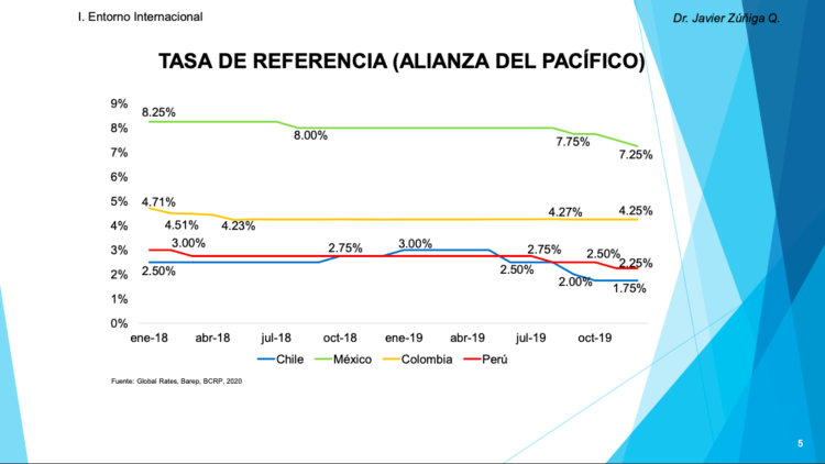 • La política monetaria en los países de la Alianza del Pacífico se ha caracterizado por la reducción de sus tasas de interés de referencia, incentivando el dinamismo de la demanda interna, en el cuarto trimestre del año 2019.