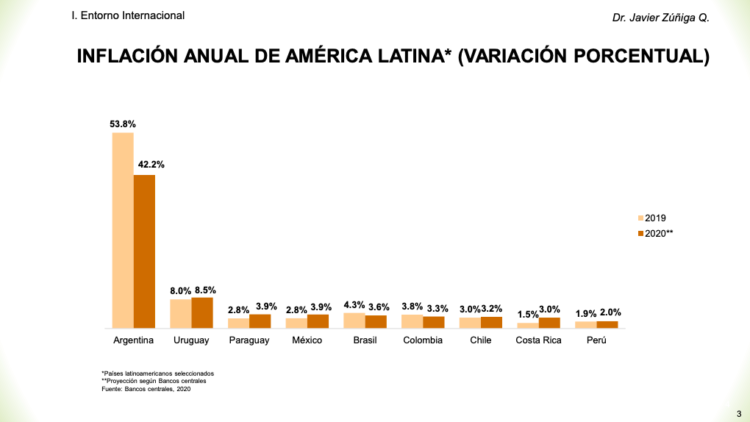 • Perú (1.90%), México (2.83%) y Chile (3.00%) son los países con menor tasa de inflación de la región en 2019. En 2020, Perú (2.0%), Chile (3.2%) y México (3.9%) serán los países con las menores tasas de inflación de América Latina.