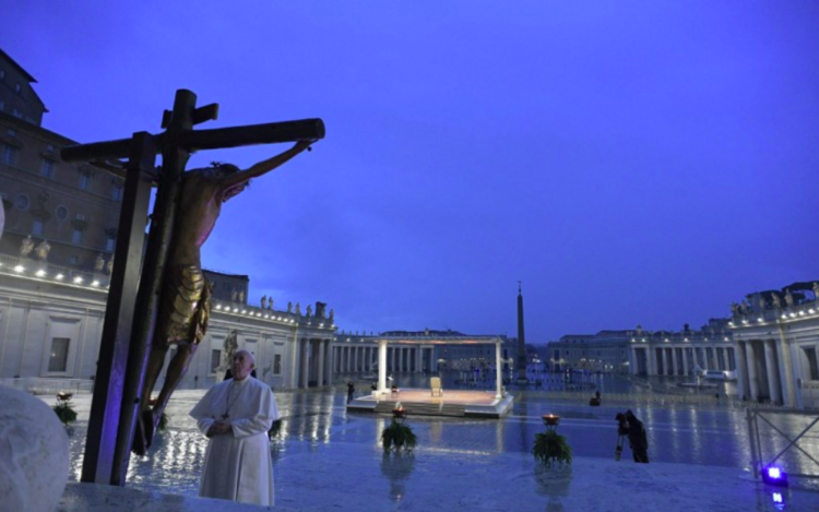 Venerdì 27 marzo 2020, con il ‘momento di preghiera’ sul sagrato e nell’atrio di San Pietro, papa Francesco ha offerto al mondo un’alta (e in tale forma inedita) testimonianza di che cosa significhi essere Romano Pontefice. Nelle stesse ore l’attuale governo italiano , con una nota emessa dal Ministero dell’Interno, ha invece mostrato con quanta considerazione tratti i cattolici italiani (al di là delle udienze richieste -e ottenute- da Conte a Bergoglio, inteso come utilissimo sponsor politico) tanto da poterli offendere con vergognosa impudenza.