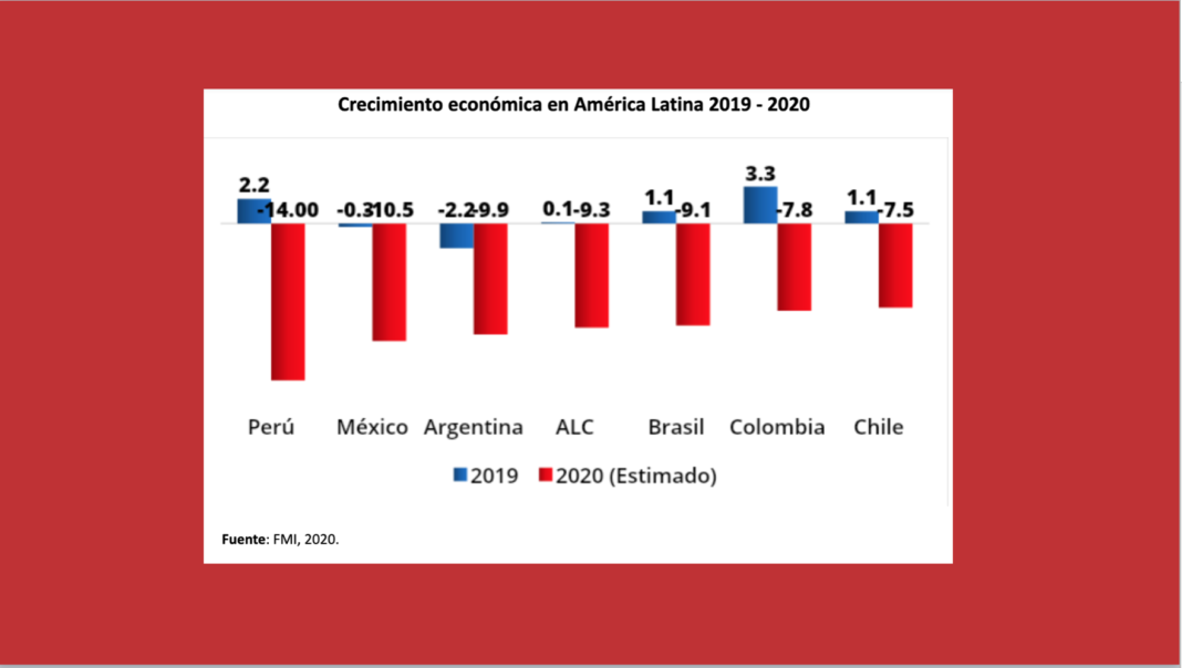 La reciente intervención de Kristalina Georgieva, Directora Gerente del FMI, en la conferencia de gobernantes de América Latina y el Caribe (organizado por España), nos dejó un conjunto de datos sobre América Latina y el Caribe (ALC) y el mundo. La economía mundial se contraerá 4.9% en el 2020 y el 95% de los países obtendrán un crecimiento per cápita negativo en este año, provocando pérdidas económicas de USD 12 billones entre el 2020 y 2021.