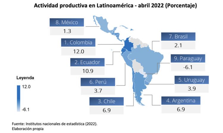 El Fondo Monetario Internacional (FMI), recientemente redujo su proyección del crecimiento económico mundial de 3.6% a 3.2%, debido al impacto negativo del conflicto entre Rusia y Ucrania, la elevada inflación en economías desarrolladas y la desaceleración económica de China. A pesar del sombrío panorama económico mundial, la gran mayoría de las economías de Latinoamérica presentan un favorable avance en su actividad productiva local.