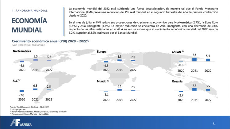 • En el mes de julio, el FMI redujo sus proyecciones de crecimiento económico para Norteamérica con 2.7%, la Zona Euro con 2.6% y Asia Emergente con 4.6%. La mayor reducción se encuentra en Asia Emergente, con una diferencia de 0.8% respecto de las cifras estimadas en abril. En Latinoamérica, la Cepal mantuvo su perspectiva del PBI latinoamericano en 1.7%, cifra por debajo del 2.5% estimado por el Banco Mundial.